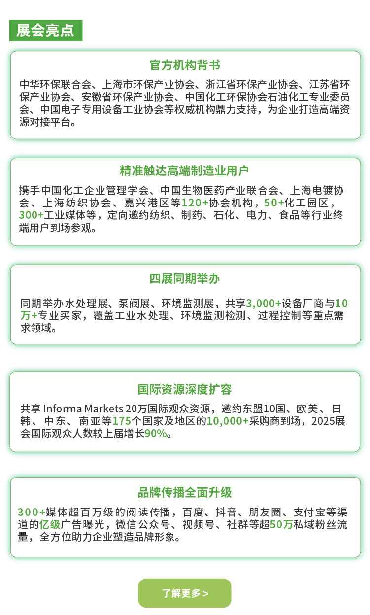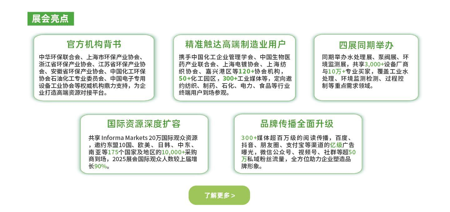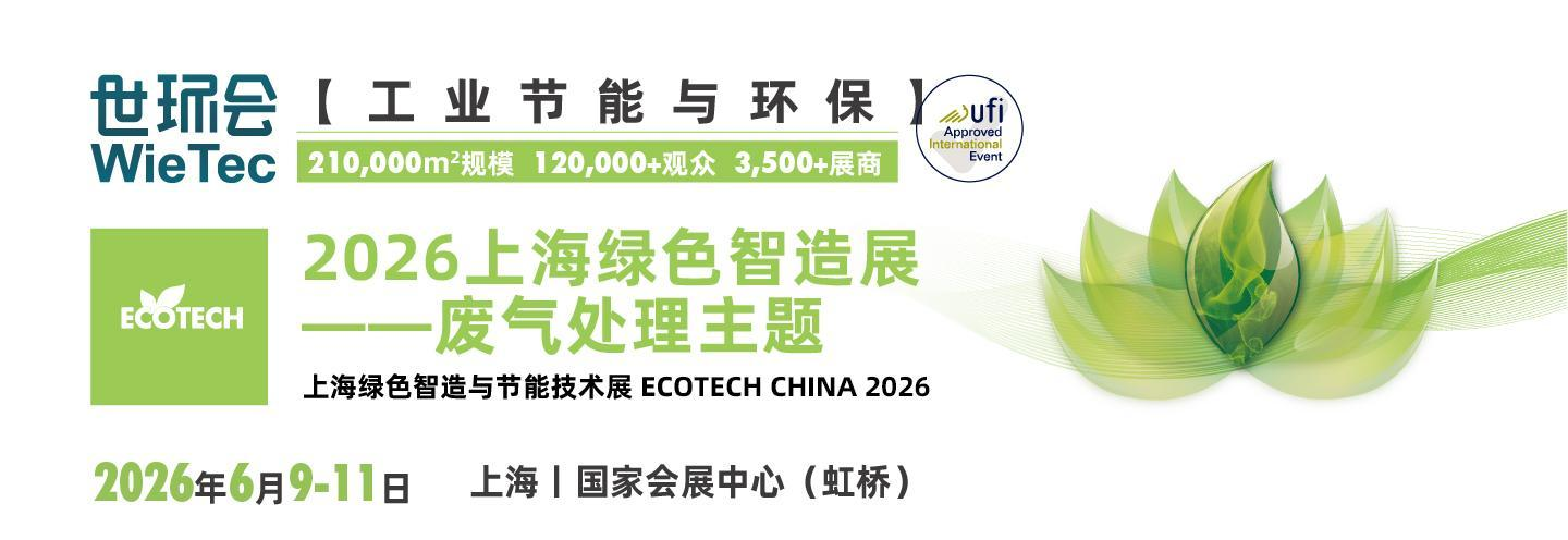 上海绿色智造展——废气处理主题展区将于2026年6月9-11日在上海|国家会展中心(虹桥)盛大启幕。2026年展会规模预计将达到20,000平米,吸引600多家品牌企业参展,汇聚30,000+来自电子、半导体、新能源、石化、化工、制药、钢铁、冶金、涂装等领域及环保领域的专业用户,为参展企业搭建“技术展示+政策解读+商业对接”的一站式交流平台。